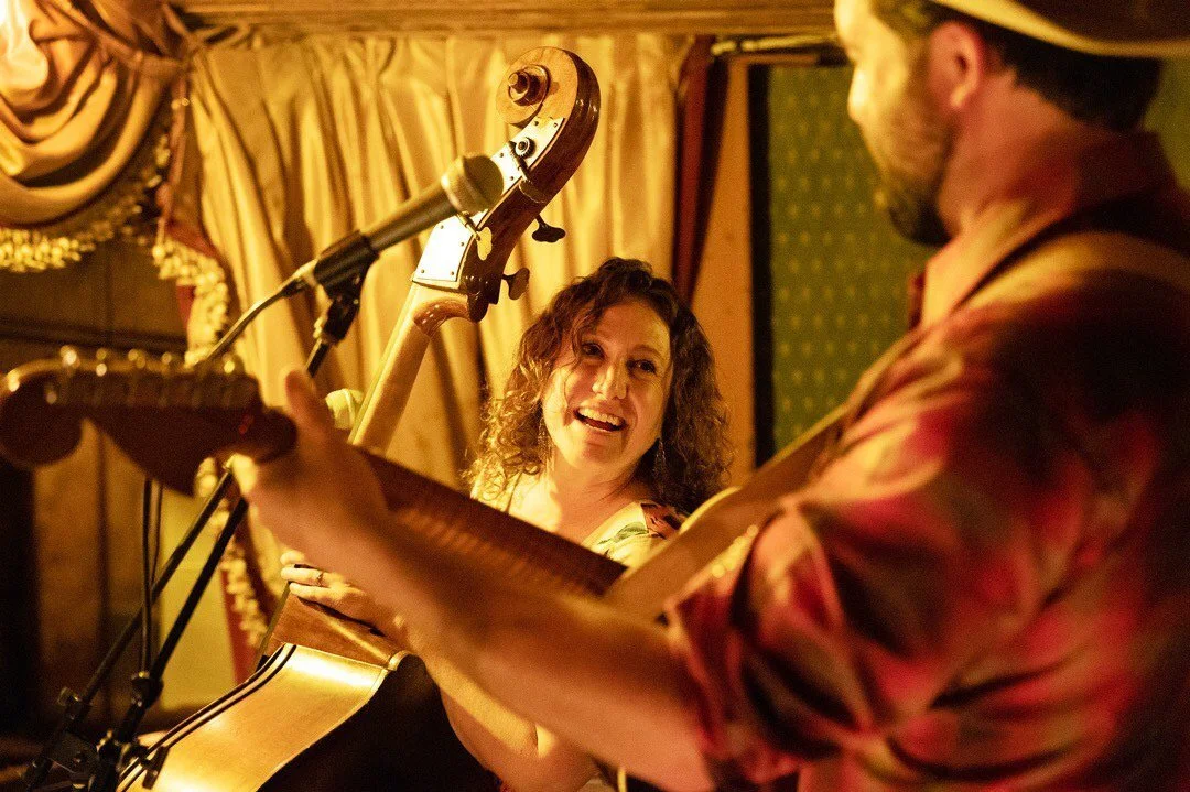 "Bassist Carolyn Sills and her guitarist husband, Gerard Egan - Santa Cruz's Les Paul and Mary Ford - crank out good stories, catchy love songs and creative chord progressions that will take listeners back to vibes of the post-World-War-II era. Carolyn is the real deal of throwback country music.” - Good Times Magazine